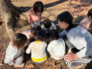 木の実や葉っぱ、小石など“いいもの“を探すいいもの探しやかくれんぼ、マテマテ遊びと楽しいことはたくさんです。