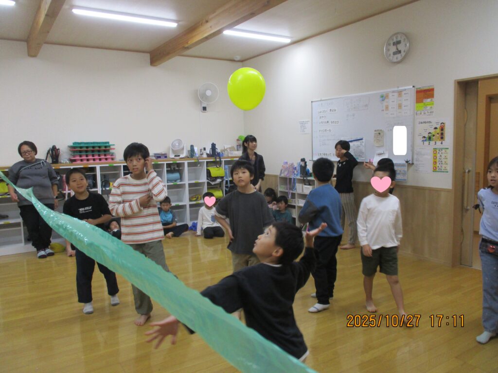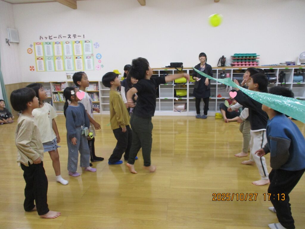 ボールと違い、風船は柔らかくゆっくり動くため、低学年でも遊びやすいようにみえました。