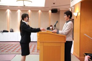 内定者お一人ずつ壇上に上がっていただき、堂々とした様子で証書を授与されておりました。