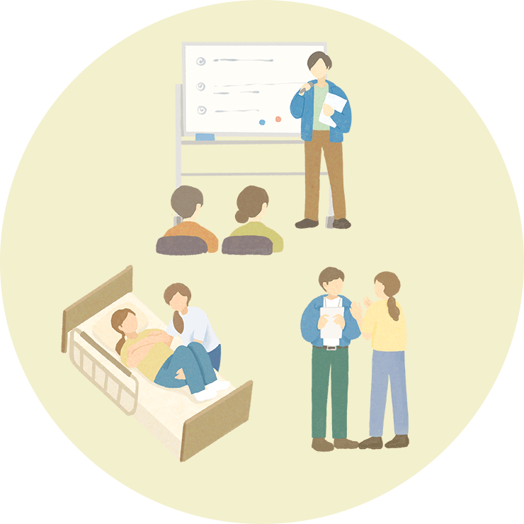 A2自動車運転免許(AT限定可)は全員必要です。保育園勤務なら保育士、相談事業所勤務なら社会福祉士や精神保健福祉士等の専門資格が必要です。介護職や総合職、障がい児者支援職、福祉用具営業職の場合は、資格が無くても大丈夫です。入職してから資格を取得をできる支援制度もあります。